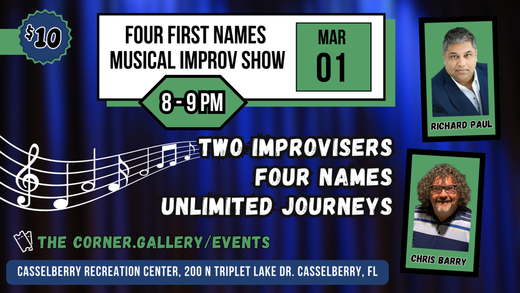 Join nationally-renowned improv troupe “Four First Names” as they take you on a fully improvised musical journey.