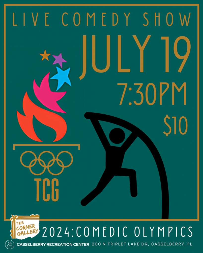 Light your torches! The Corner Gallery ensemble is competing for the comedic gold medal–and your praise–in this riveting comedy show! Players will compete against each other and the winner will be determined based on your applause! The end of the night will have one of your players winning The Corner Gallery Gold Medal (not officially endorsed by the US Olympic Committee.) Bring your tracksuits or whatever you feel is Olympics apparel–it’s game time!